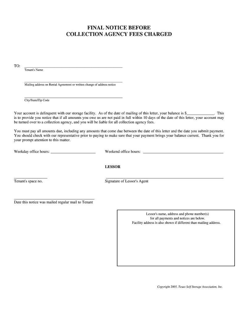 Get the free Final Notice Before Collection Agency Fees