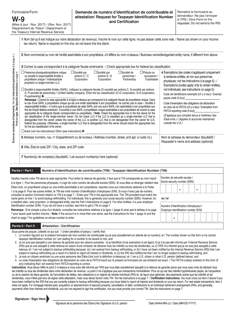 Formula ire/FormW9 (Mile four : Nov. 2017) / (Rev. Nov. 2017) Department du Prior / Department of the Treasury Internal Revenue ServiceRemettre LE formula ire AU demander. Ne's pas enjoyed lies./