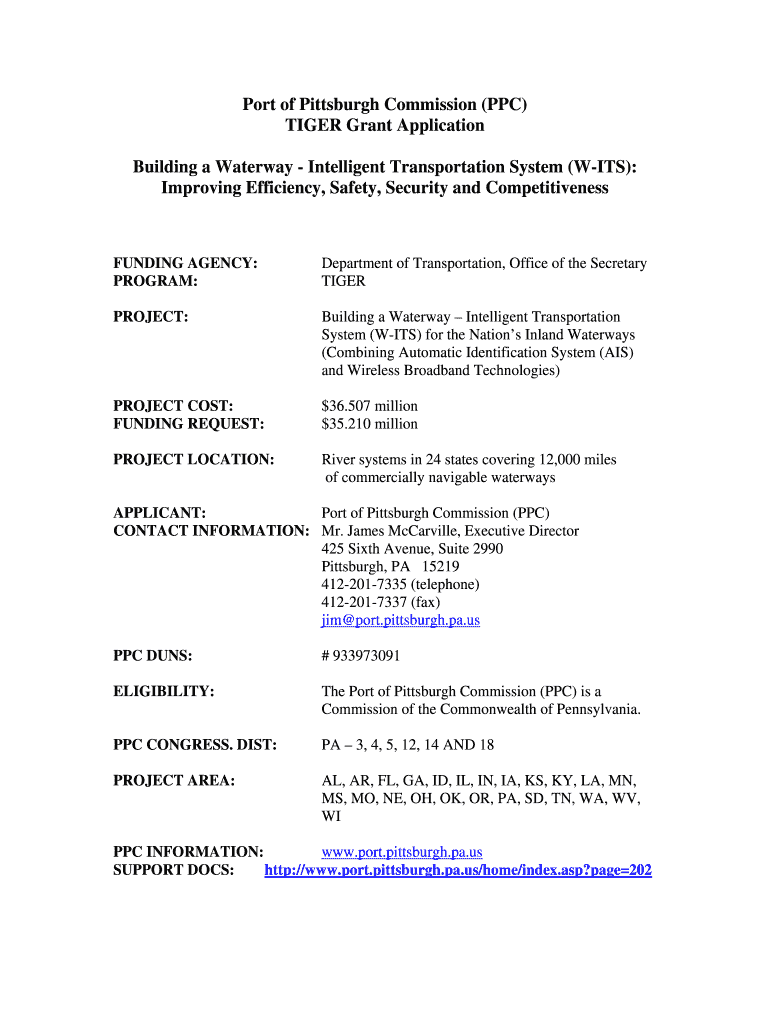 Port of Pittsburgh Commission (PPC) TIGER Grant Application Building a Waterway Intelligent Transportation System (WITS): Improving Efficiency, Safety, Security and CompetitivenessFUNDING AGENCY: