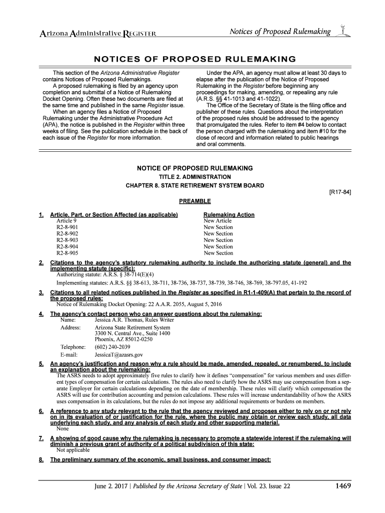 Get the free notices of proposed rulemaking - Arizona State Retirement ...