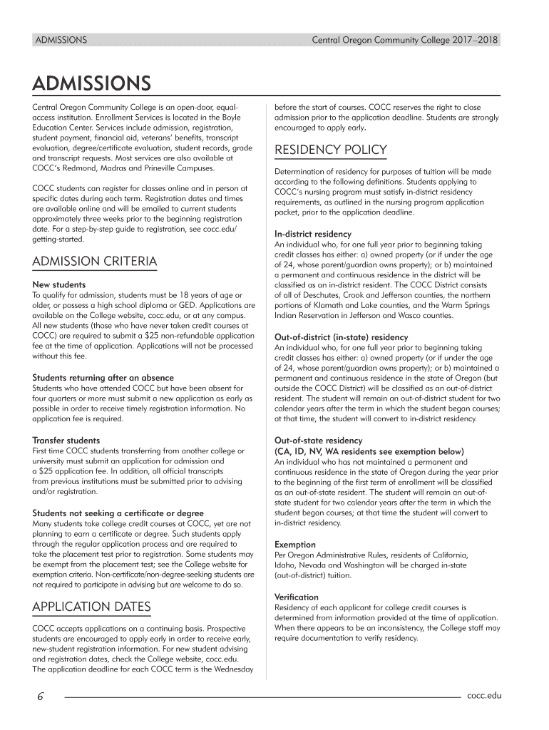 ADMISSIONS Central Oregon Community College 20172018ADMISSIONS