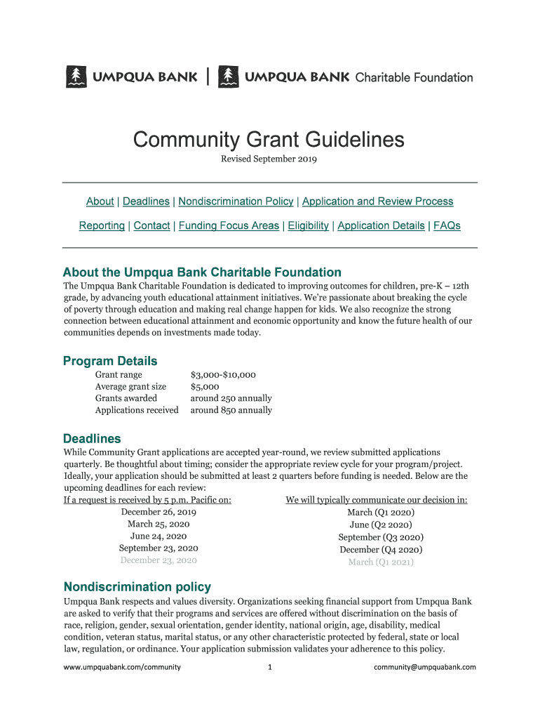 Get the free Umpqua Bank Community Grant Guidelines (for edits)