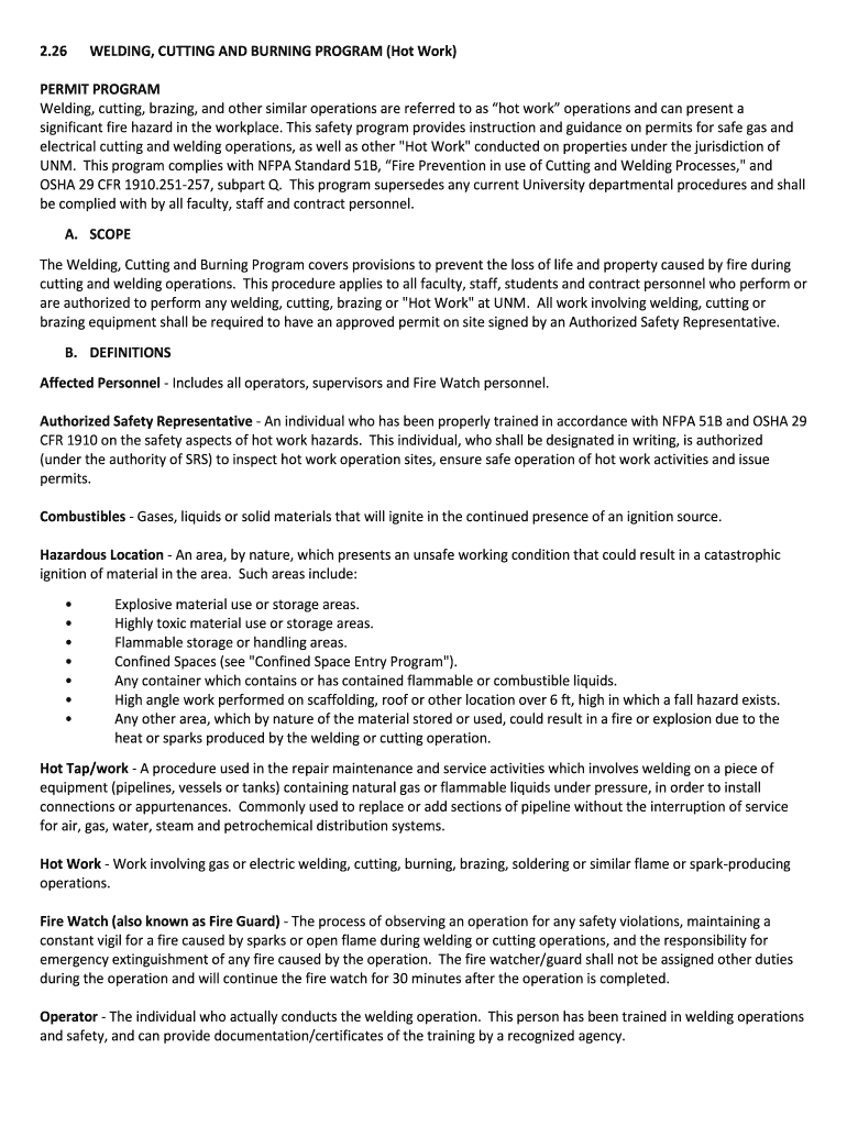 Get the free (Hot Work) PERMIT PROGRAM Welding, cutting, brazing, and other ... - srs unm
