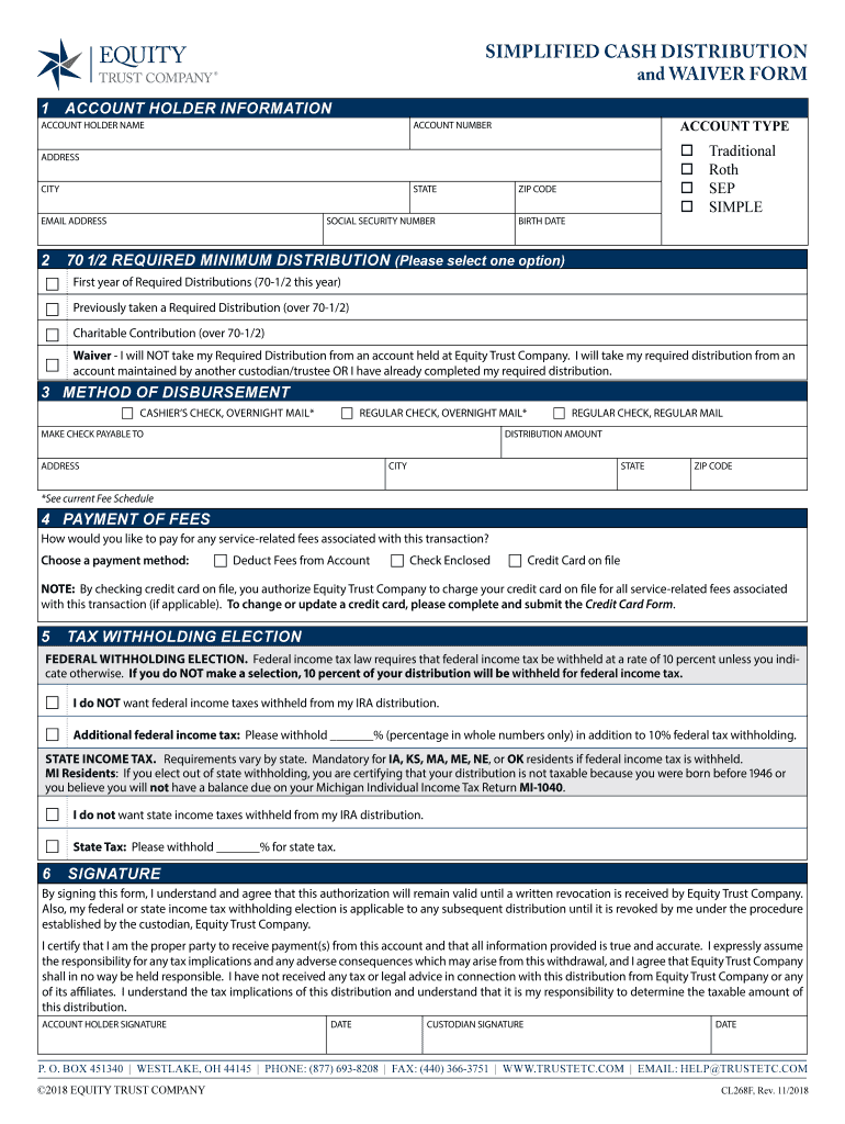 SIMPLIFIED CASH DISTRIBUTION and WAIVER FORM 1ACCOUNT HOLDER INFORMATIONACCOUNT HOLDER NAMEACCOUNT TYPEACCOUNT Number o address CITYSTATEEMAIL ADDRESS2SOCIAL SECURITY NUMBER ZIP CODE BIRTH DATETraditional