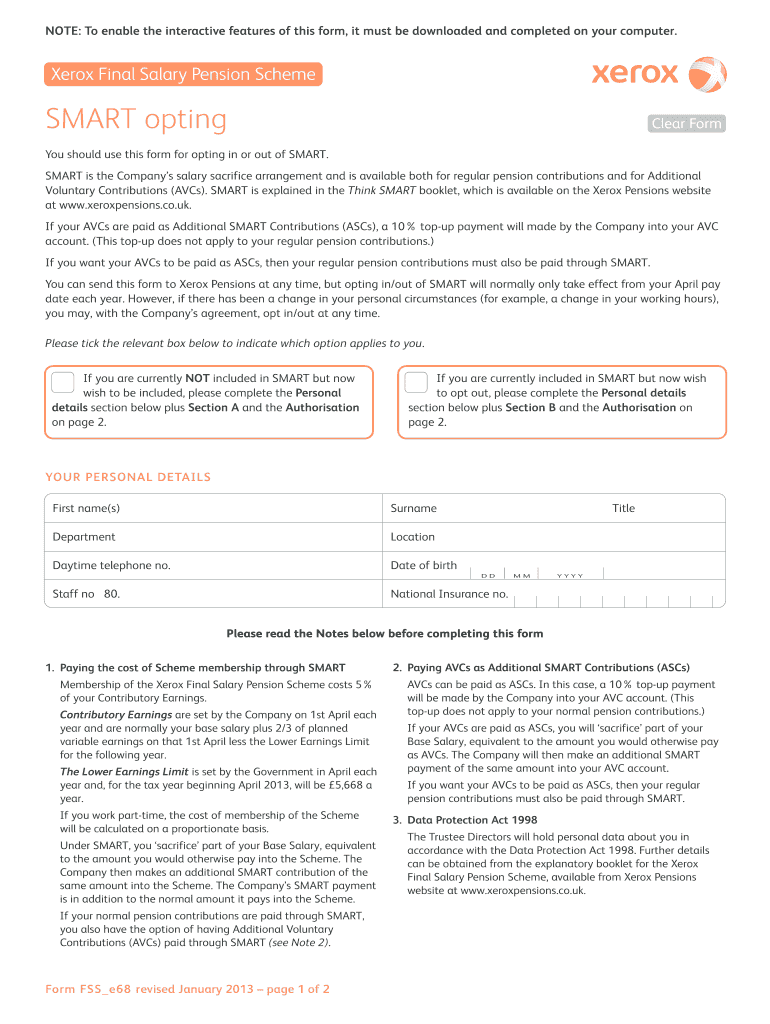 NOTE: To enable the interactive features of this form, it must be downloaded and completed on your computer. Xerox Final Salary Pension Scheme SMART opting Clear Form You should use this form for