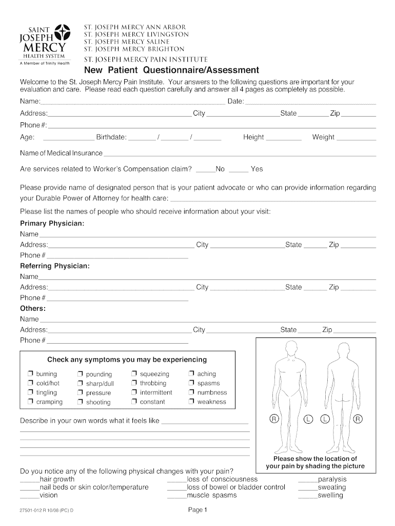 Get the free New Patient Questionnaire/Assessment - St. Joseph Mercy Ann Arbor