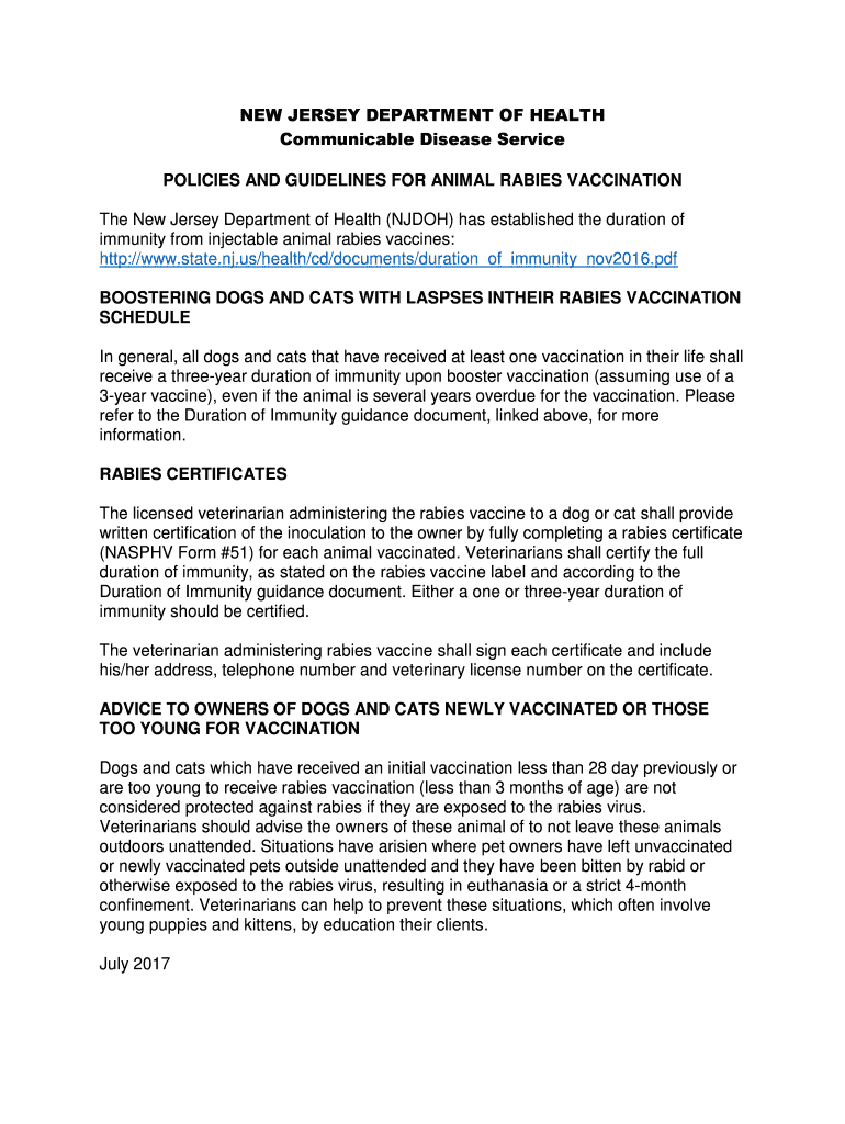POLICIES AND GUIDELINES FOR ANIMAL RABIES VACCINATION