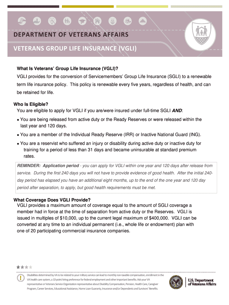 Get the free DEPARTMENT OF VETERANS AFFAIRS VETERANS GROUP LIFE INSURANCE ...