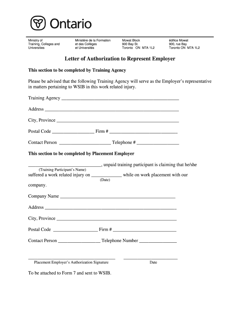 Ministry of Training, Colleges and Universities Minis re DE la Formation et DES Coll GES et University s Moat Block 900 Bay St. Toronto ON M7A 1L2 edifice Moat 900, rue Bay Toronto ON M7A 1L2 Letter
