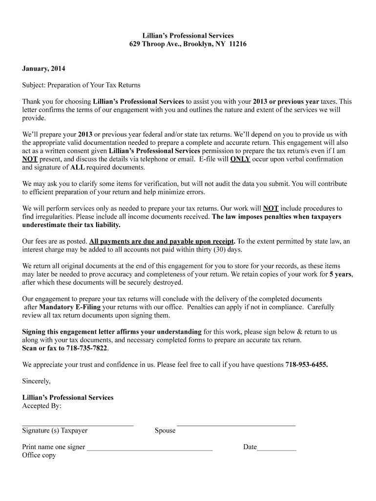 Get the free Tax Return Preparation Agreement