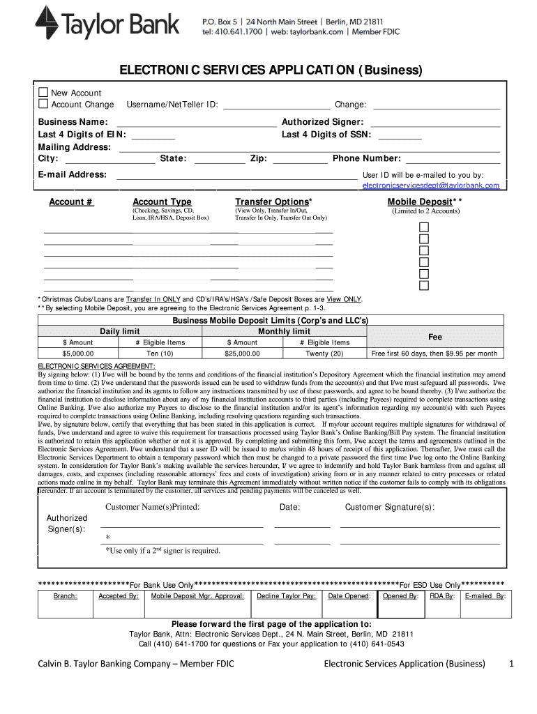 New Account ChangeUsername/Net Teller ID:Business Name:
