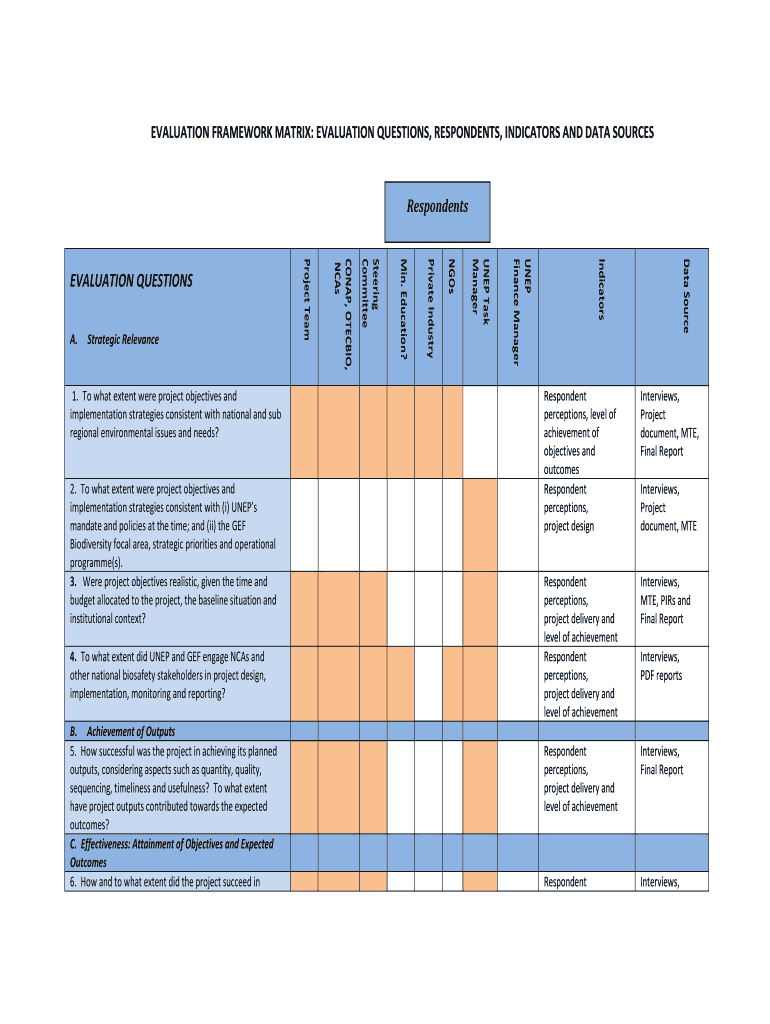 EVALUATION FRAMEWORK MATRIX: EVALUATION QUESTIONS, RESPONDENTS, INDICATORS AND DATA SOURCESRespondents