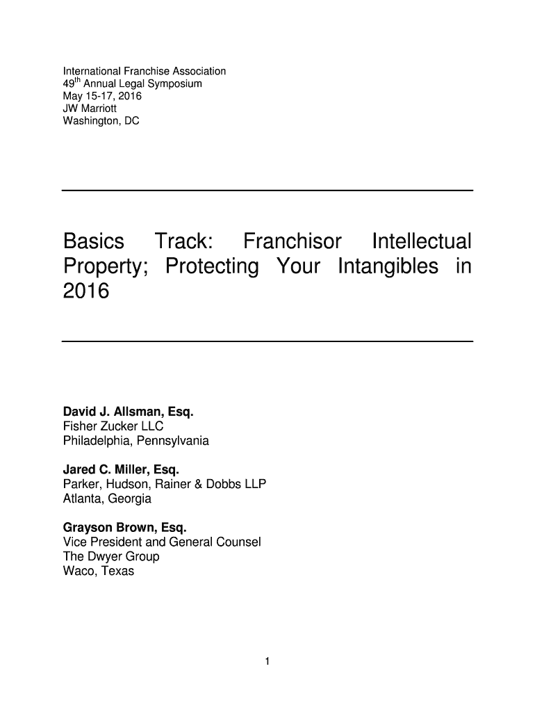 International Franchise Association 49th Annual Legal Symposium May 1517, 2016 JR Marriott Washington, Basics Track: Franchisor Intellectual Property; Protecting Your Intangibles in 2016David J. Allan,