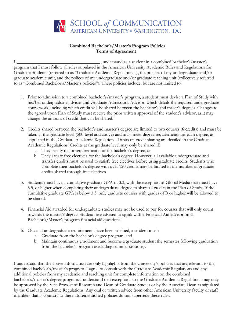Students who are enrolled in the Kogod combined bachelors masters program are required to file for it.
