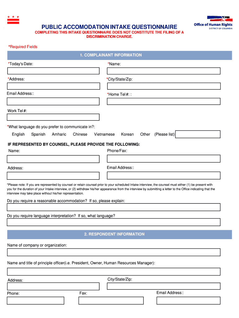 Get the free Public Accommodation Intake Questionnaire