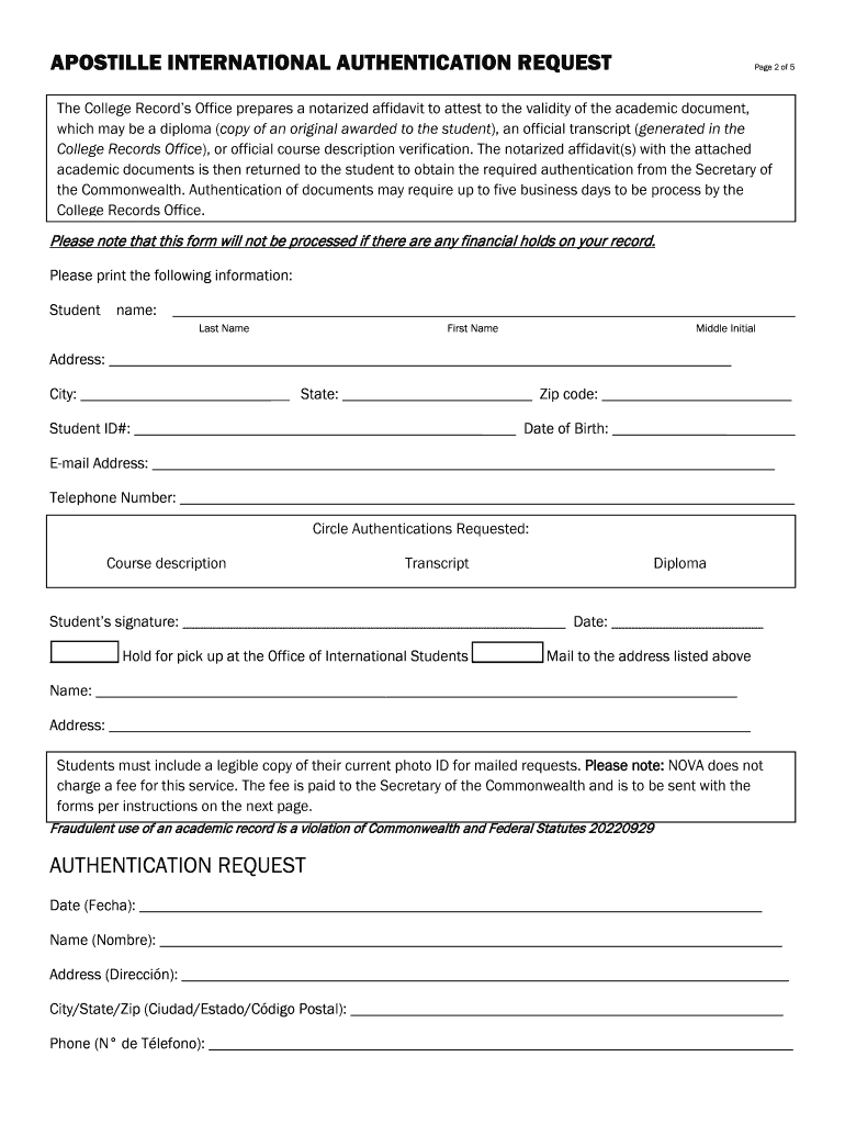 Primarily, students at Northern Virginia Community College require the Apostille International Authentication Request for various academic or professional scenarios. Individuals enrolling in international universities or applying for jobs abroad will find this form indispensable.