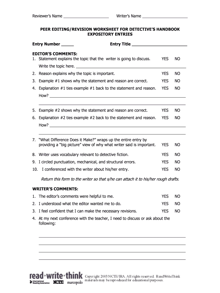Get the free Peer editingrevision worksheet for detective39s bb - ReadWriteThink - readwritethink