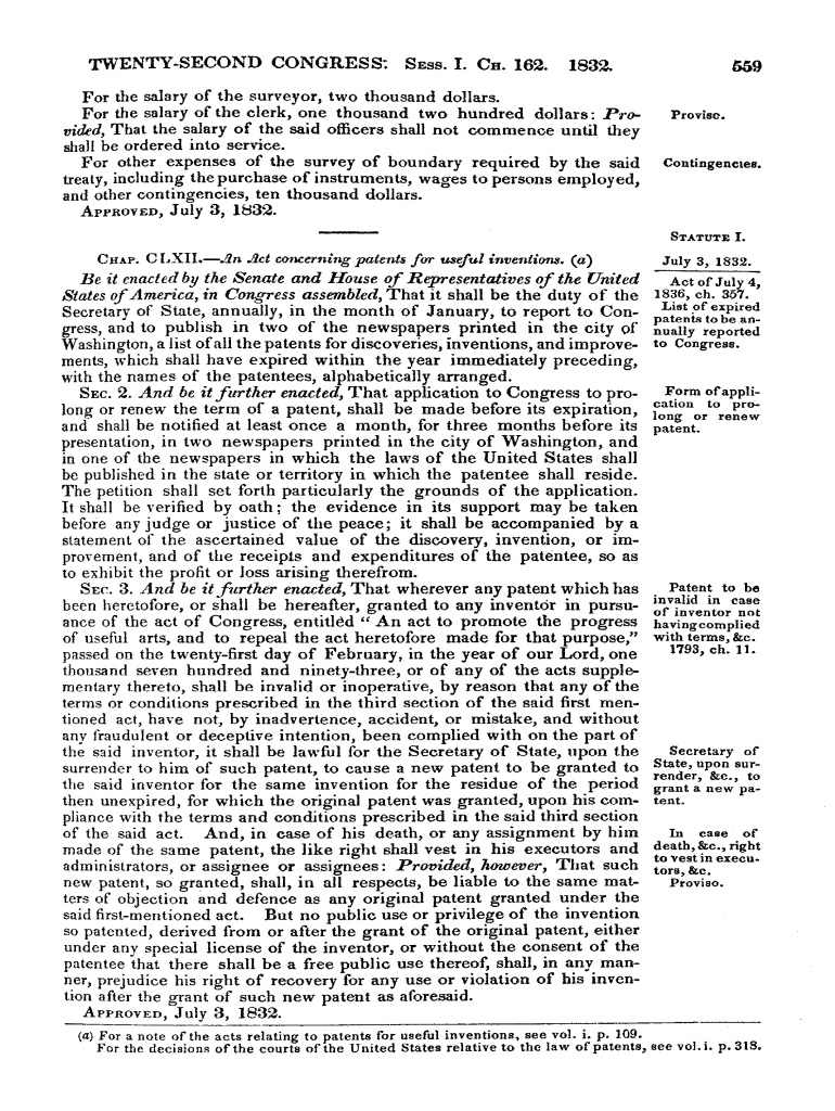 Get the free An Act concerning patents for useful inventions. (a). Congress 22, Session 1, Chapte...