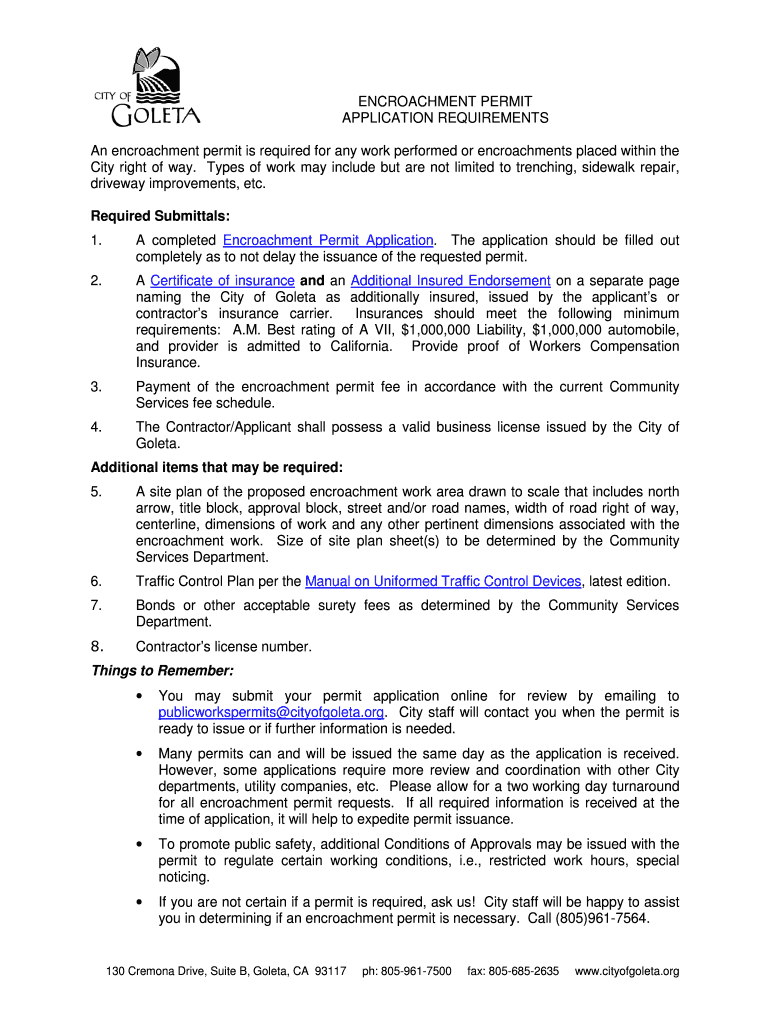 Encroachment Permit Application Requirements is not the form you're looking for?Search for another form here.