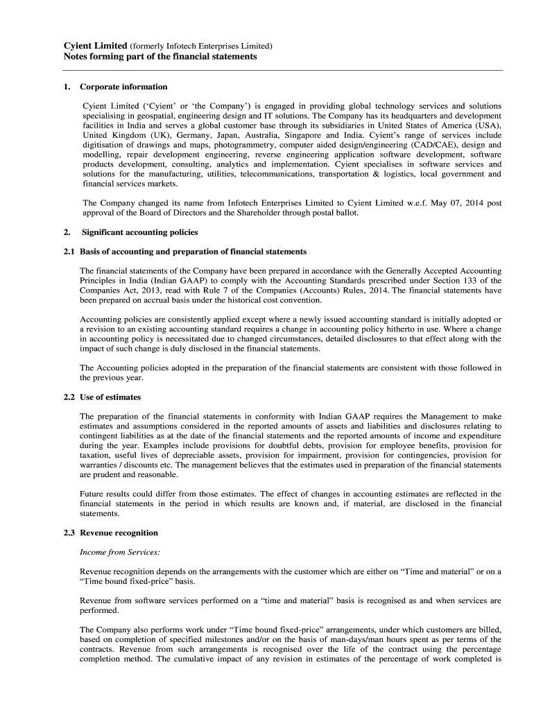 Get the free Notes forming part of the financial statements - Cyient
