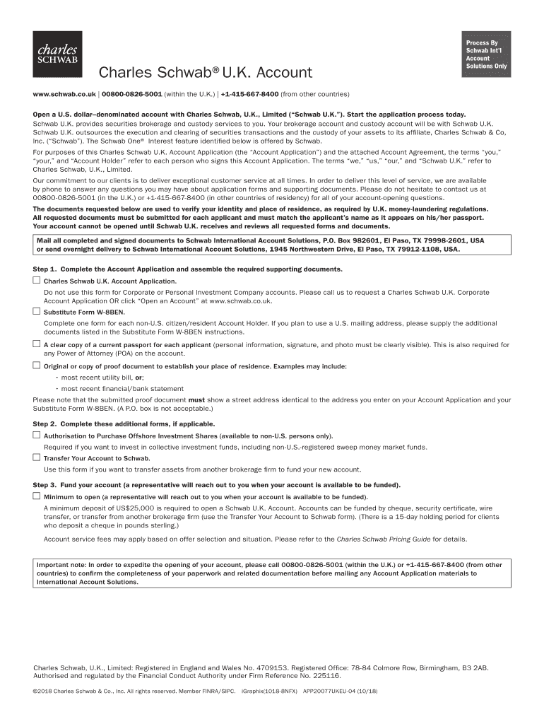 CLEAR Charles Schwab. K. Accounting Process By Schwab Into Account Solutions Only.Schwab.co.UK 0080008265001 (within the U.K.) +14156678400 (from other countries) Open a U.S. dollar denominated account