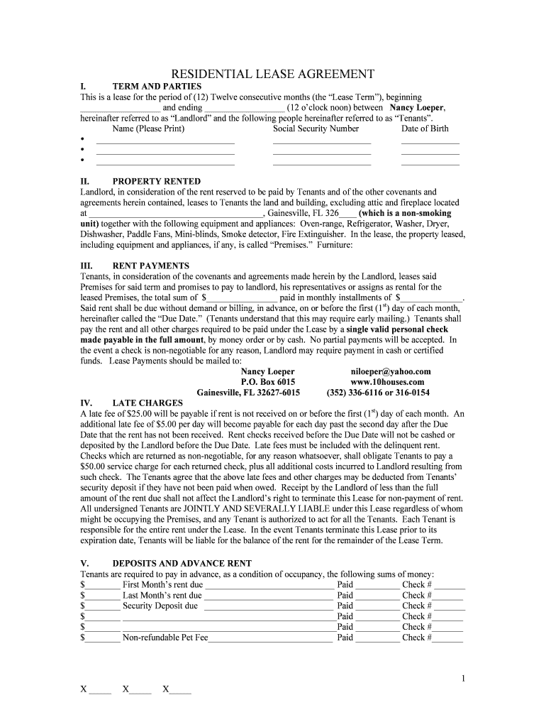 Verify that all required fields in the agreement are completed, including tenant and landlord details.
