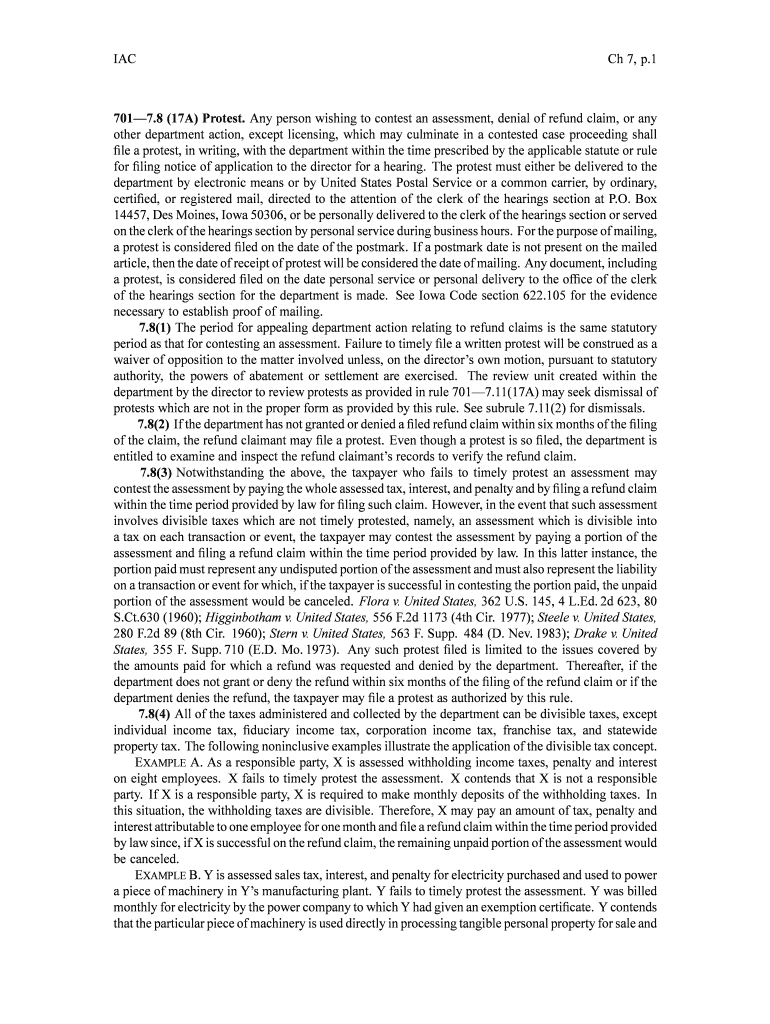 IAC Ch 7, p.17017.8 (17A) Protest. Any person wishing to contest an assessment, denial of refund claim, or any