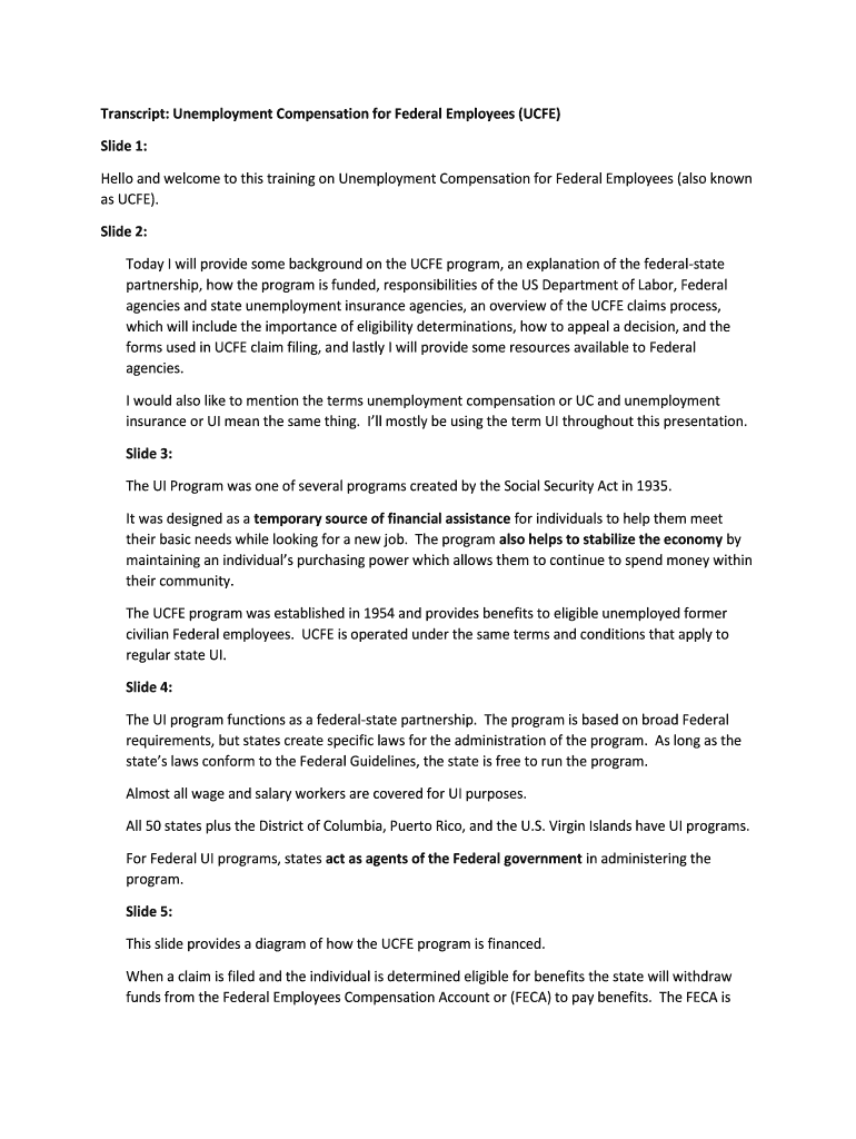Transcript: Unemployment Compensation for Federal Employees (CFE)