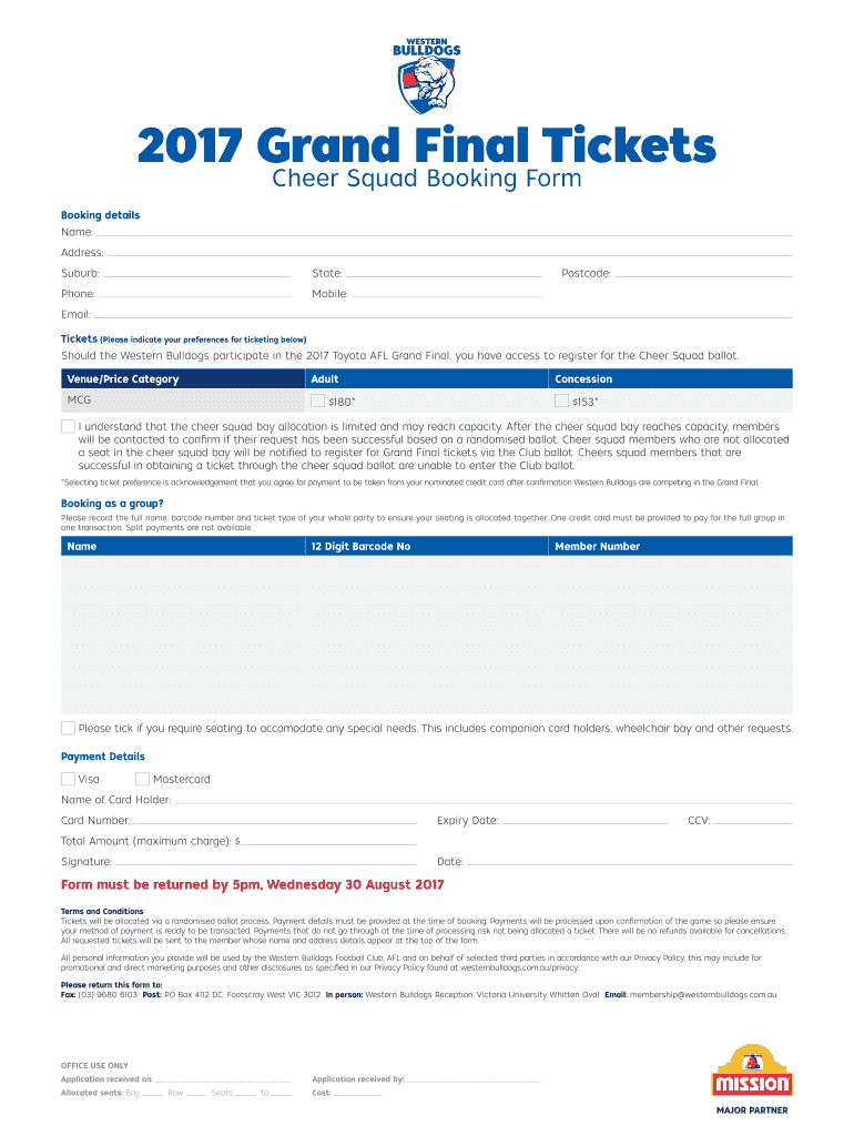 Get the free Form must be returned by 5pm, Wednesday 30 August 2017