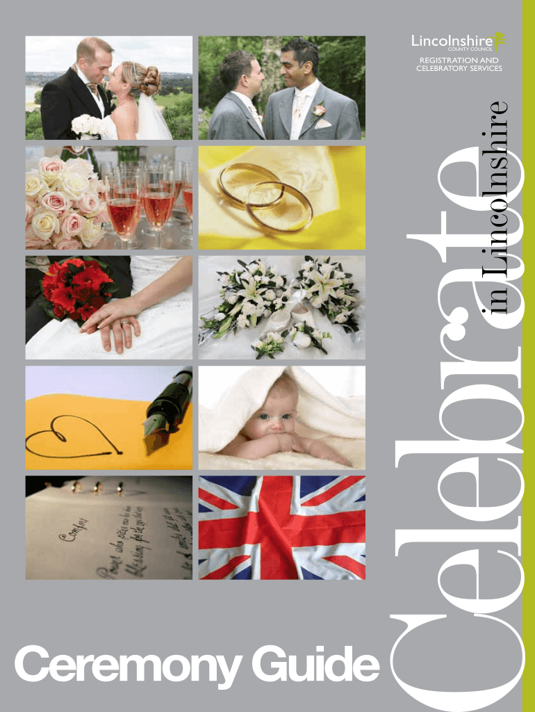 Celebrate in Lincolnshire REGISTRATION and celebratory Services Ceremony Guide Lincolnshire Registration & Celebratory Services Welcome We are delighted that you are considering holding your ceremony