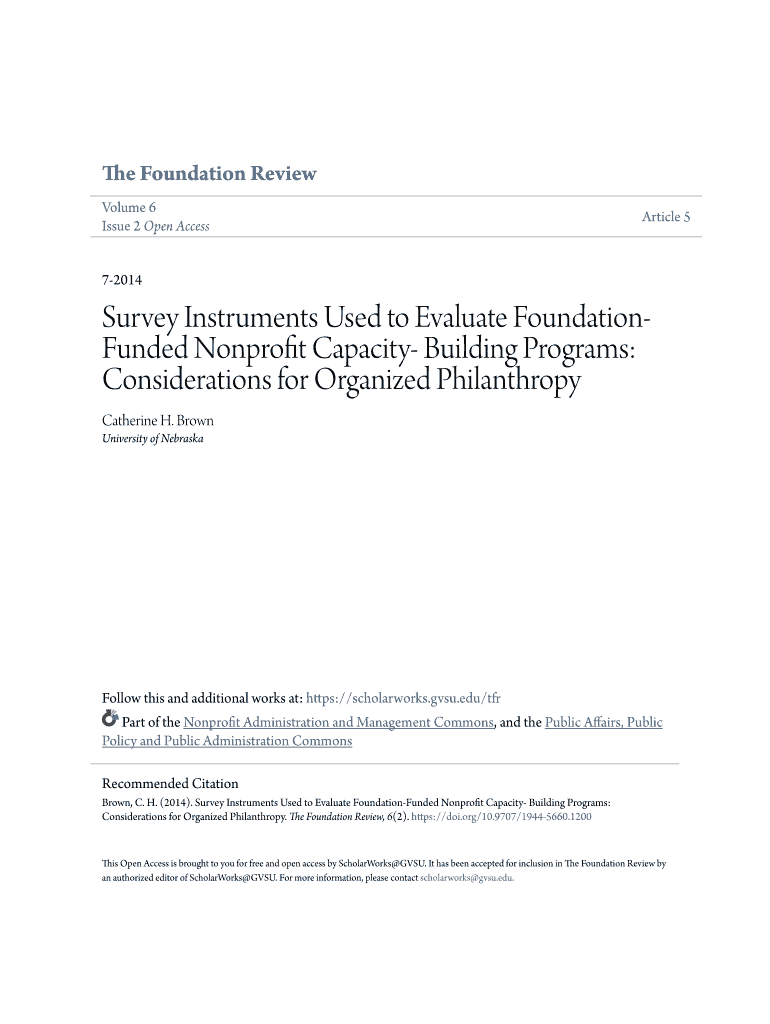 Issue 2 Open AccessArticle 572014Survey Instruments Used to Evaluate FoundationFunded Nonprofit Capacity Building Programs: