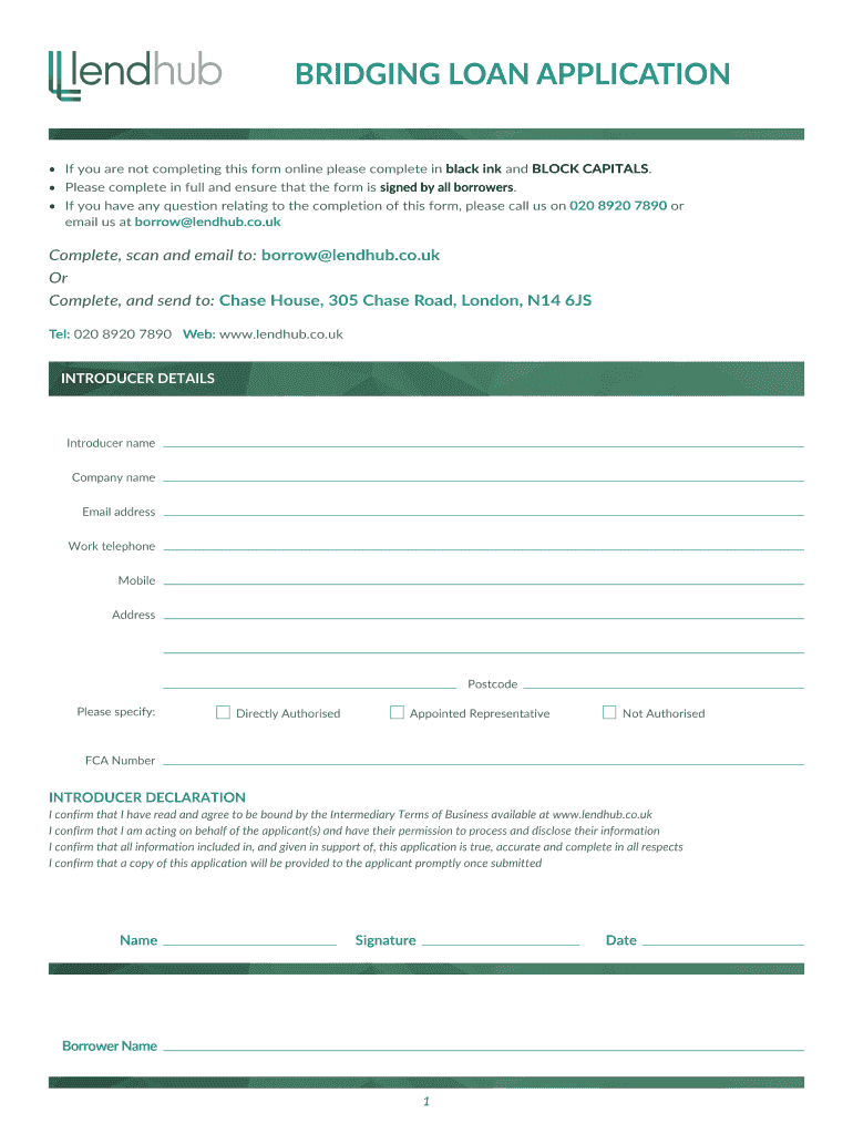 Get the free BRIDGING LOAN APPLICATION - Lendhub