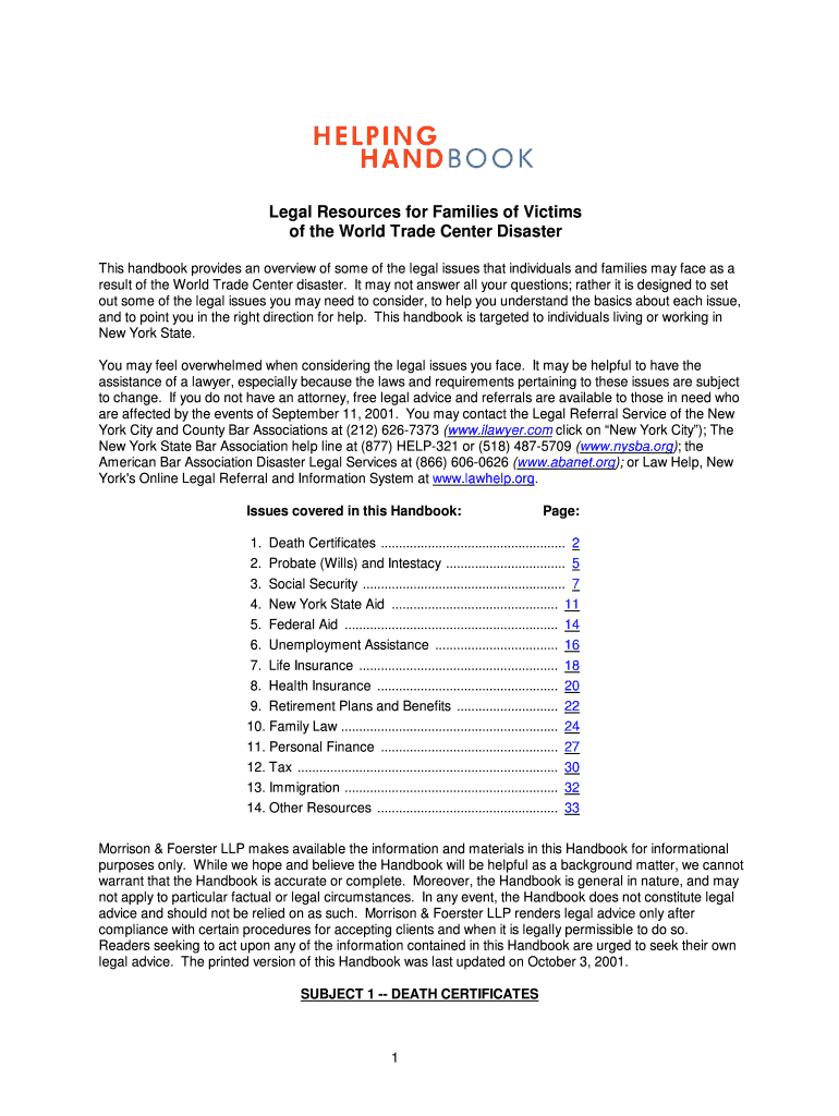 Get the free Wtc helping handbook - 9-11 Summit - Courts in the aftermath of ... - 9-11summit