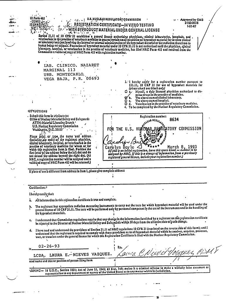 Is 5M.0:CERTIFICAT9tH VITO TEST0114,., REGISTRATION.×W;H BYPRODUOTMATERIALUNDERGENERALLICENSE CFR '3I of.1 o10blsts 'e & leased u trUn47, hospice. Alcuin etauthorzWAs physical.OUnIcaJLAl Gentoo of