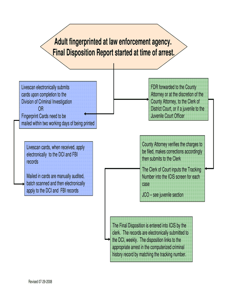 Final Disposition Report started at time of arrest. Live scan electronically submits
