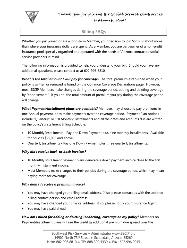 Get the free Billing FAQs - Social Service Contractors Indemnity Pool