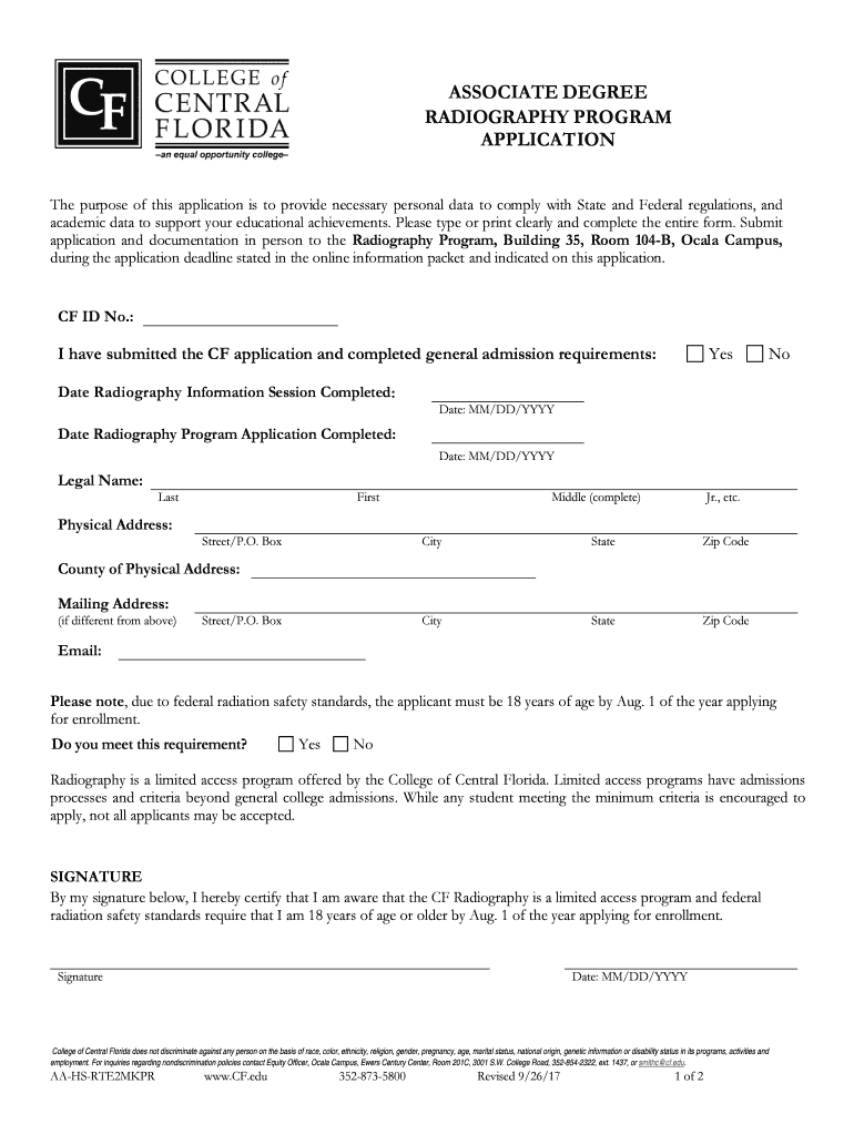 Get the free ASSOCIATE DEGREE RADIOGRAPHY PROGRAM APPLICATION - pr cf