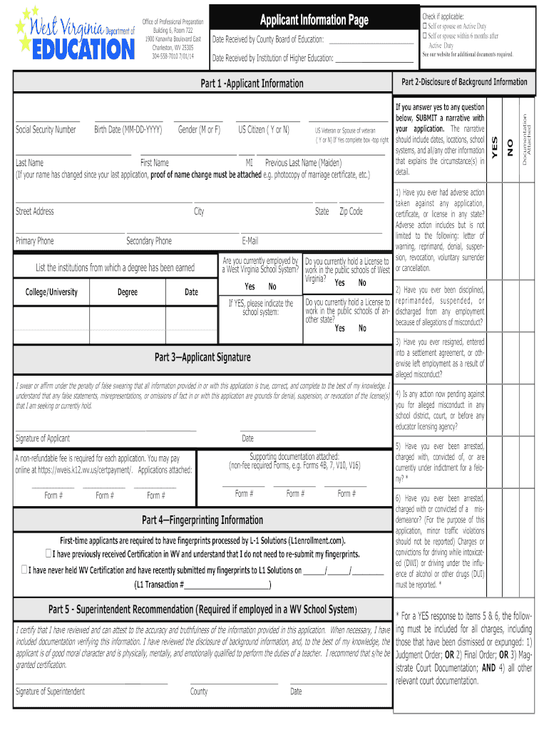 Get the free West Virginia Educator Certification Application
