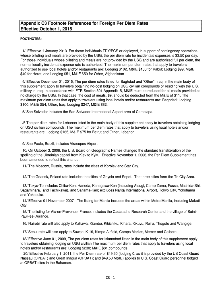Appendix C3 Footnote References for Foreign Per Diem Rates