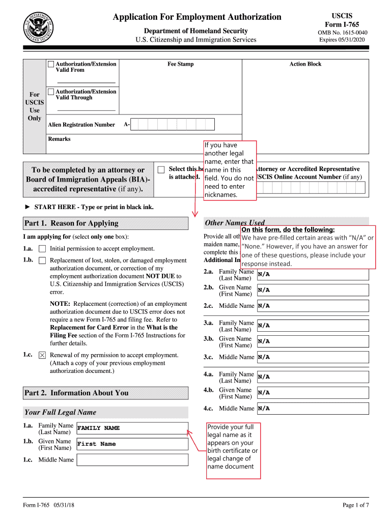Get the free Application For Employment Authorization USCIS Form I-765 ...