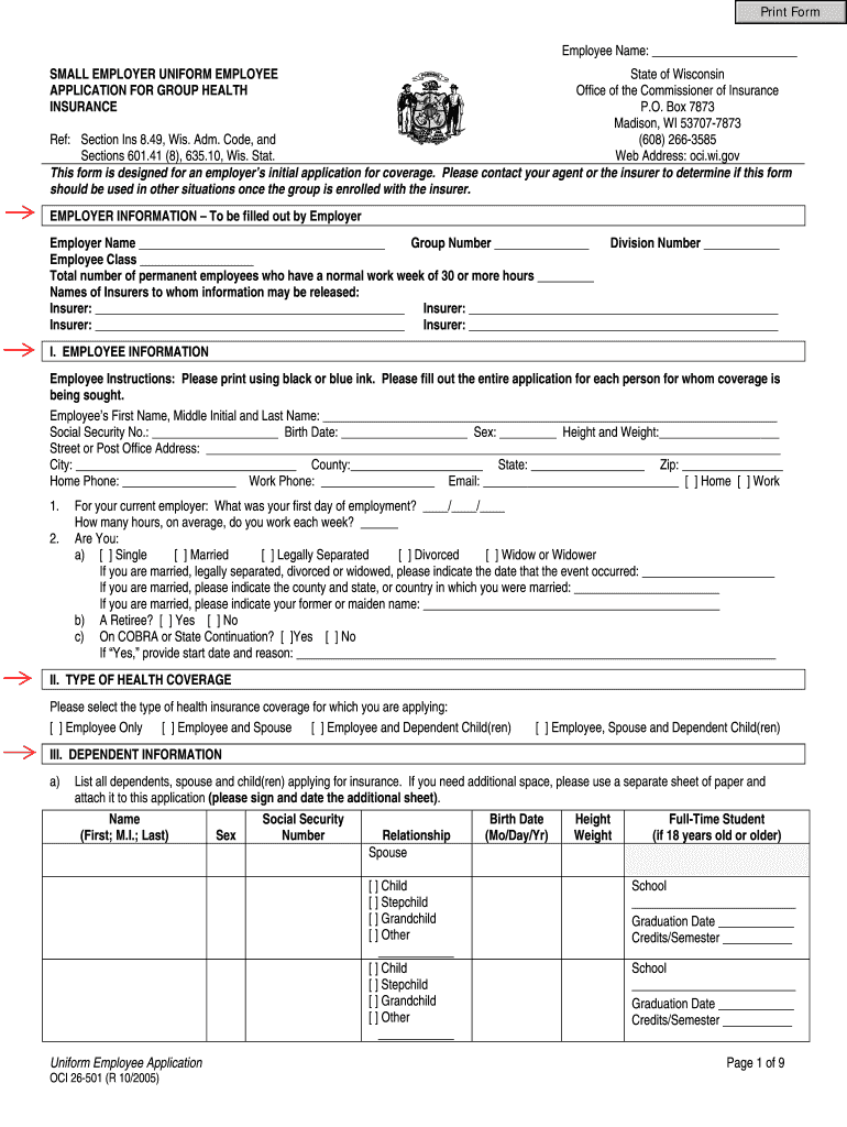 Print Form Employee Name: State of Wisconsin Office of the Commissioner of Insurance P.O. Box 7873 Madison, WI 53707-7873 (608) 266-3585 Ref: Section Ins 8.49, Wis. Adm. Code, and Web Address: OCI.WI.gov