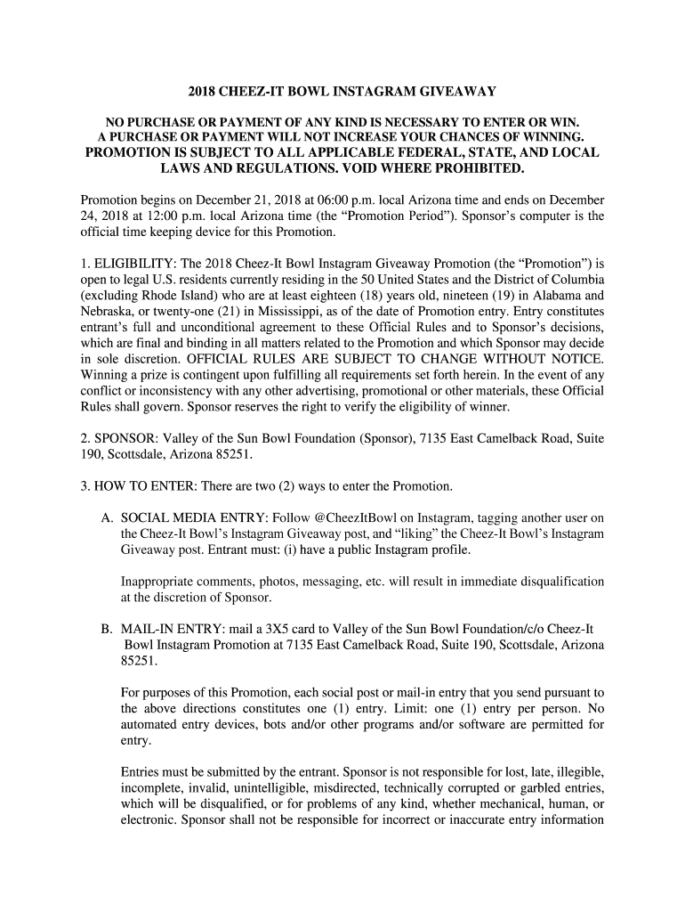 2018 CHEERIO BOWL INSTAGRAM GIVEAWAY