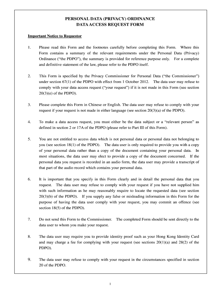 Entities that collect and process personal data of individuals are required to file privacy ordinance data access.