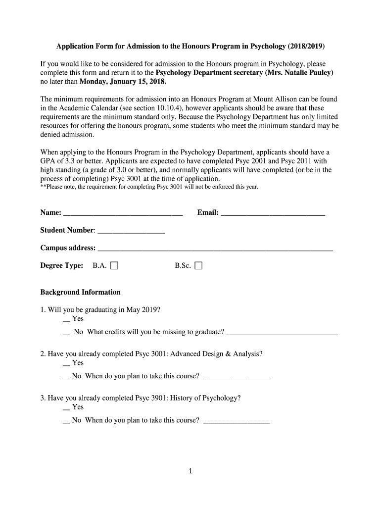 Get the free Application Form for Admission to the Honours Program in ...