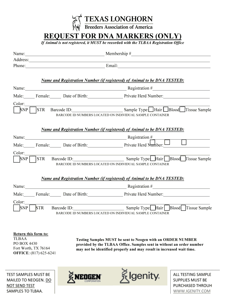 Get the free request for dna markers (only) - tlbaa