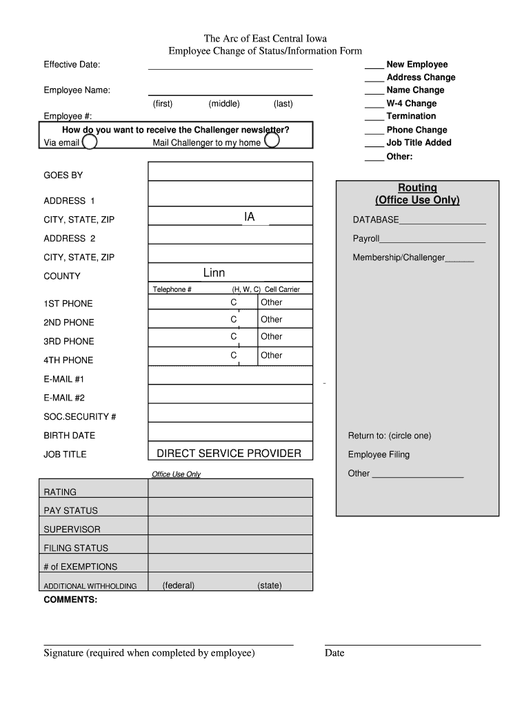 Get the free The Arc of East Central Iowa Employee Change of Status ...
