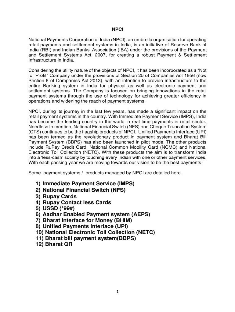 Get the free NPCI Products.pdf - NPCI National Payments Corporation of India ...