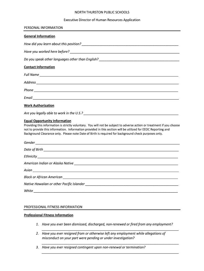 NORTH THURSTON PUBLIC SCHOOLS Executive Director of Human Resources Application PERSONAL INFORMATION General Information How did you learn about this position? Have you worked here before? Do you