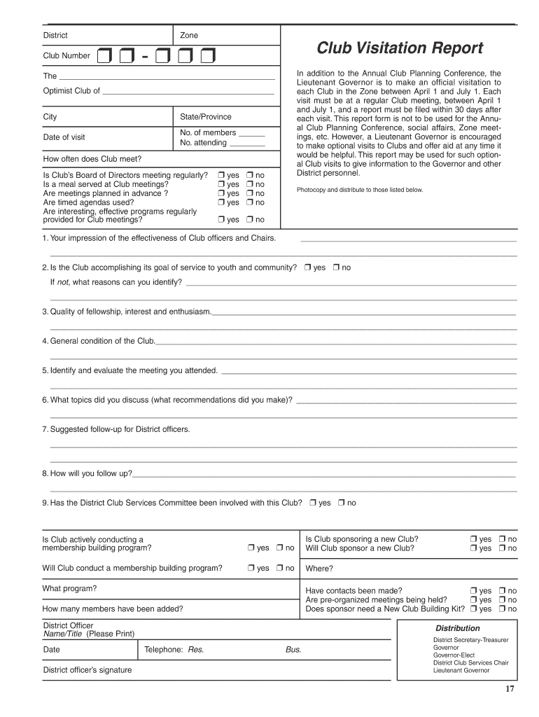 Get the free Club Visitation Report Form