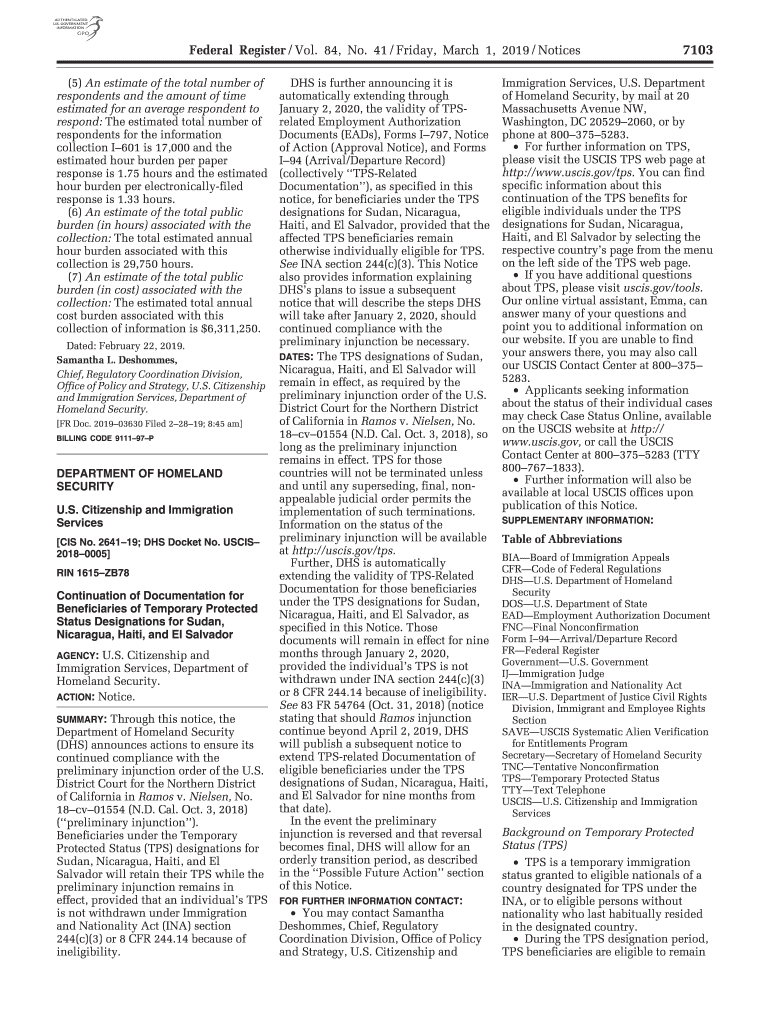 Federal Register / Vol. 84, No. 41 / Friday, March 1, 2019 / Notices
